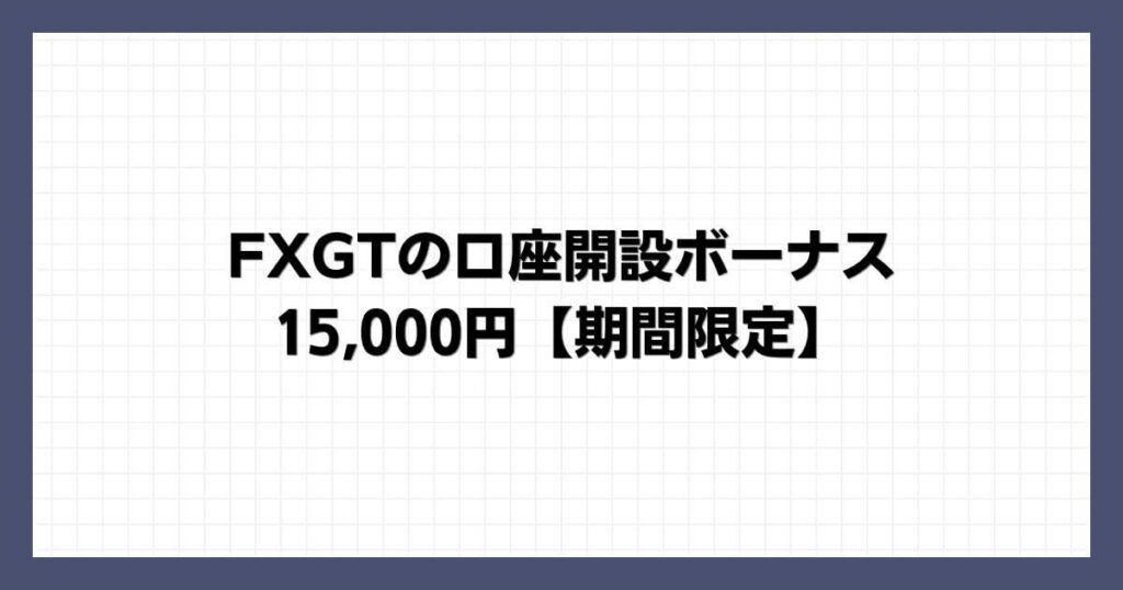 なお、FXGTのアカウントをまだ持っていない方は、当サイトから登録すれば15,000円の口座開設ボーナスと15,000円のキャッシュバックも受け取ることができます。